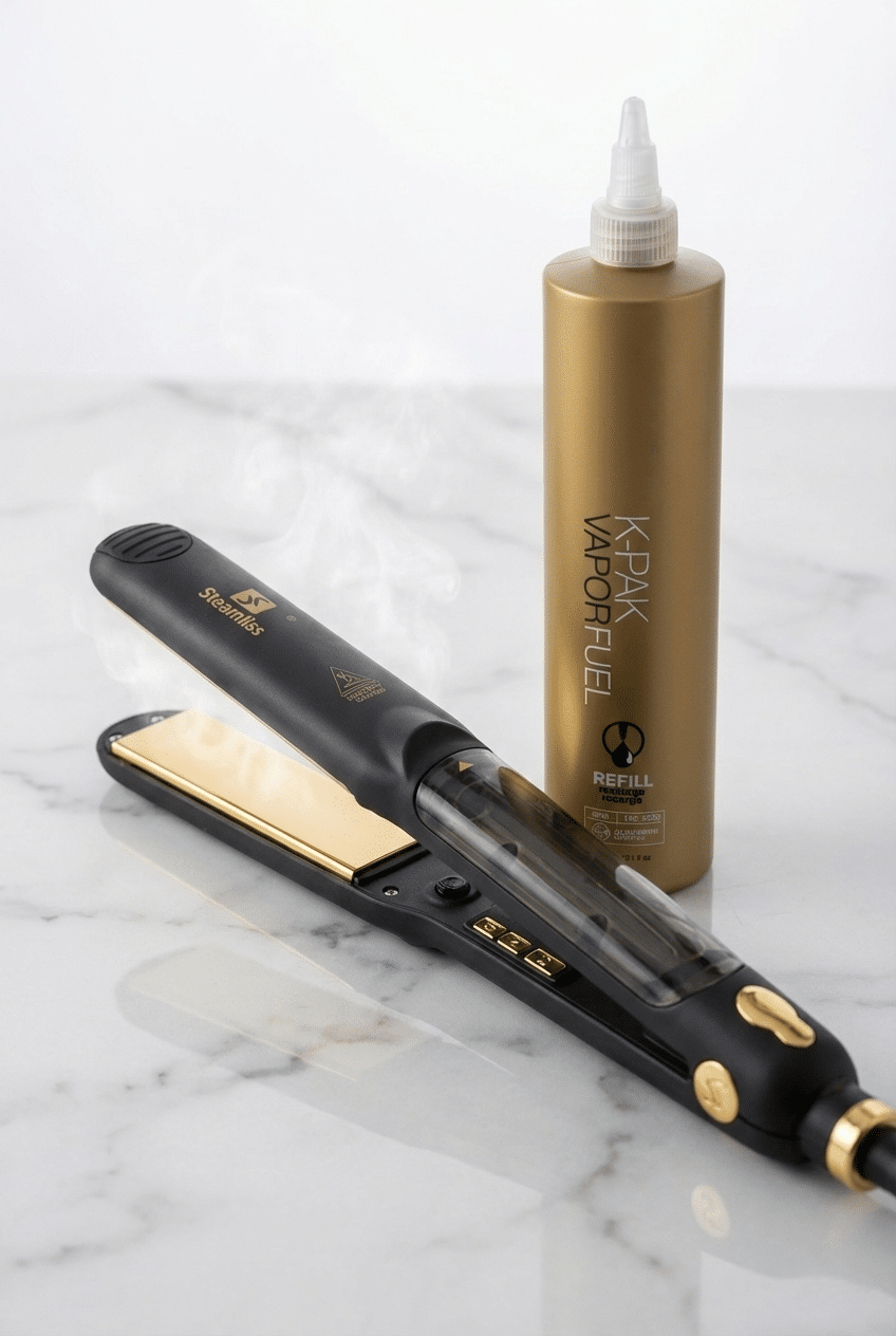 Contrairement aux lisseurs classiques qui chauffent excessivement la fibre capillaire, Steamliss diffuse une vapeur continue et maîtrisée qui hydrate le cheveu pendant le lissage. Résultat : la fibre est assouplie, le passage du lisseur est plus fluide et le cheveu est lissé en moins de passages.